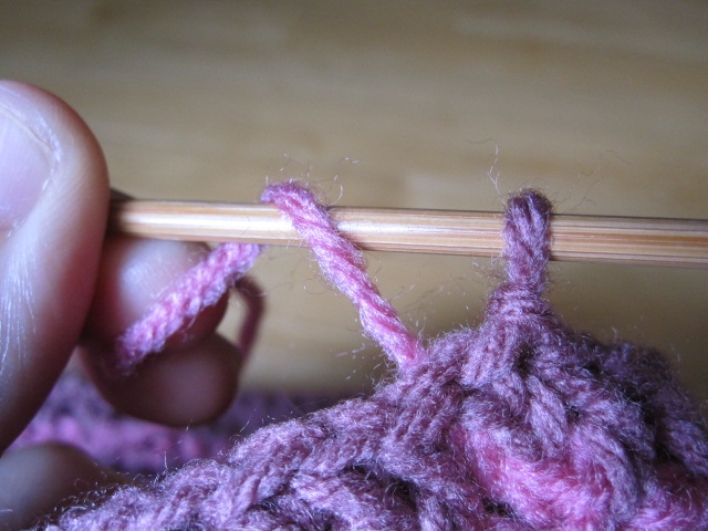 | 1) Bring Color A yarn forward, over the top and behind hook. |