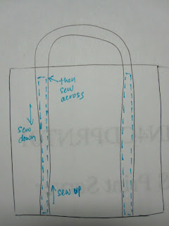 Measure about 2" from edge of bag on each side, and place marker. Line strap up bag starting from where marker is and using pin to hold the straps in place to make sewing easier. Sew up to 2nd last Sc Row, then sew across, and then down towards bottom of bag. Fasten off. Repeat for the other side of straps.