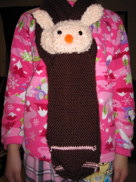 - Then crochet a doggy face and attach to the scarf.