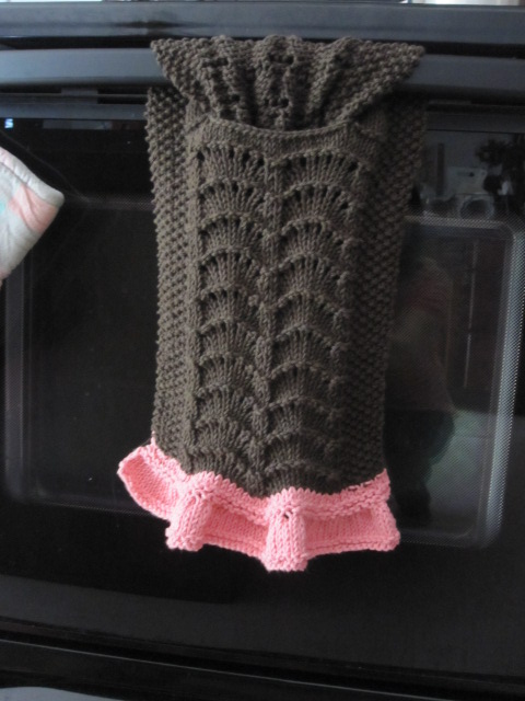 | With RS facing and ruffles on bottom, put towel through the towel ring. |